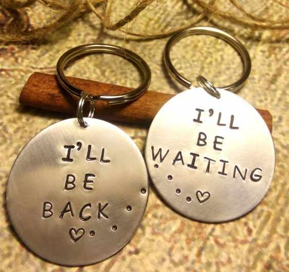He showed her keyring which he bought 11 years ago, a pair of key ring in which written in one that I'll be waiting and in other was written I'll be back